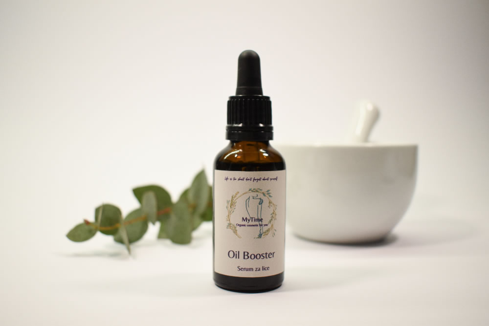 Uljani serum Oil Booster sadrži eterična ulja bušina i tamjana, te vitamin E koji sinergistički daju snažan anti-age efekat. Pored navedenih sastojaka Oil Booster sadrži i ulja avokada, jojobe i sjemenki grožđa što ga čini serumom koji osjetno omekšava kožu, daje joj sjaj i utiče na izglađivanje postojećih i manje stvaranje novih bora. Pored anti-age efekta Oil Booster uljani serum za lice je tzv. ovlaživač (engleski mosturizes), te značjno utiče na očuvanje vlažnosti kože samanjujući transepidermalni gubitak vode. Više na ovu temu možete pročitati u tekstu na blogu.