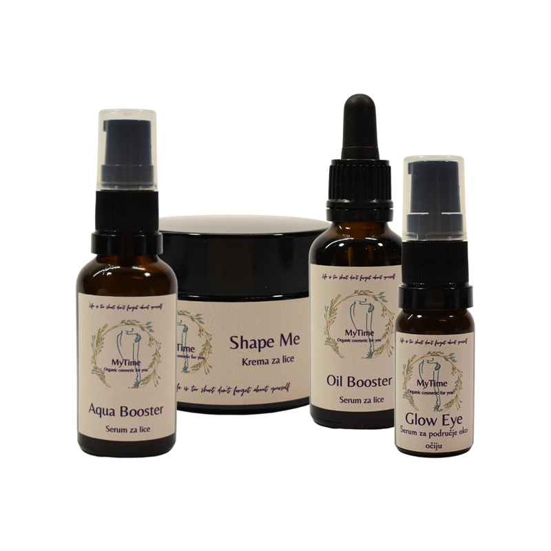 Serum za lice Aqua Booster koži daje cjelodnevnu hidriranost  i punoću, te smanjuje nadraženost kože. Hidrolat damaskne ruže, pored decentnog mirisa  serumu daje i nježni anti-age efekat.