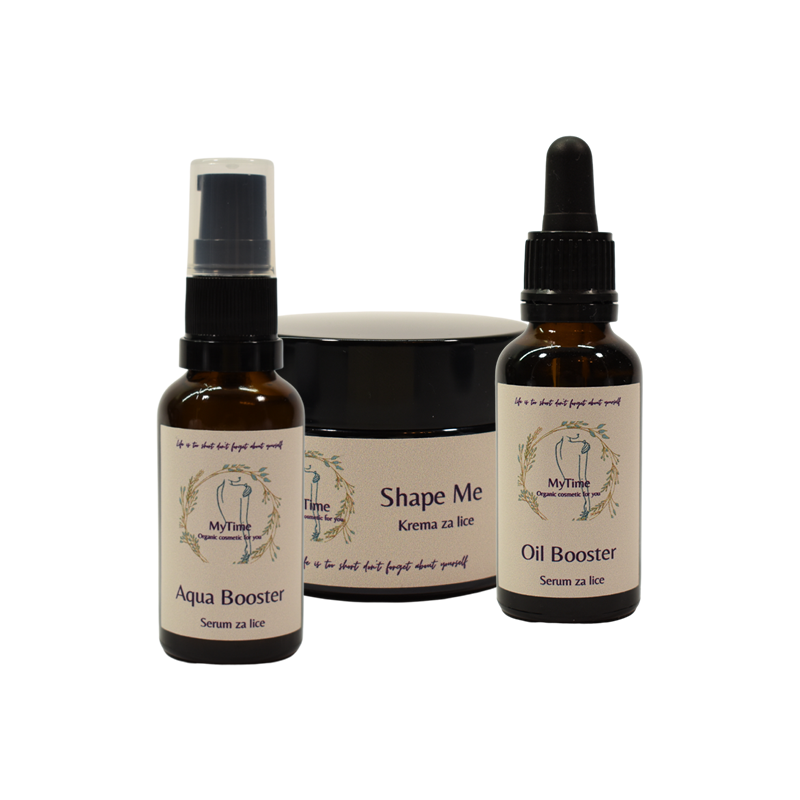 Lagana tekstura Shape Me kreme će  uz pomoć hidrolata nerolija i hladno cijeđenog ulja ploda divlje ruže tonirati, regenerisati i umiriti kožu. Vitamin E ima antioksidativno dejstvo, te će Shape Me dati puni anti-age  efekat.